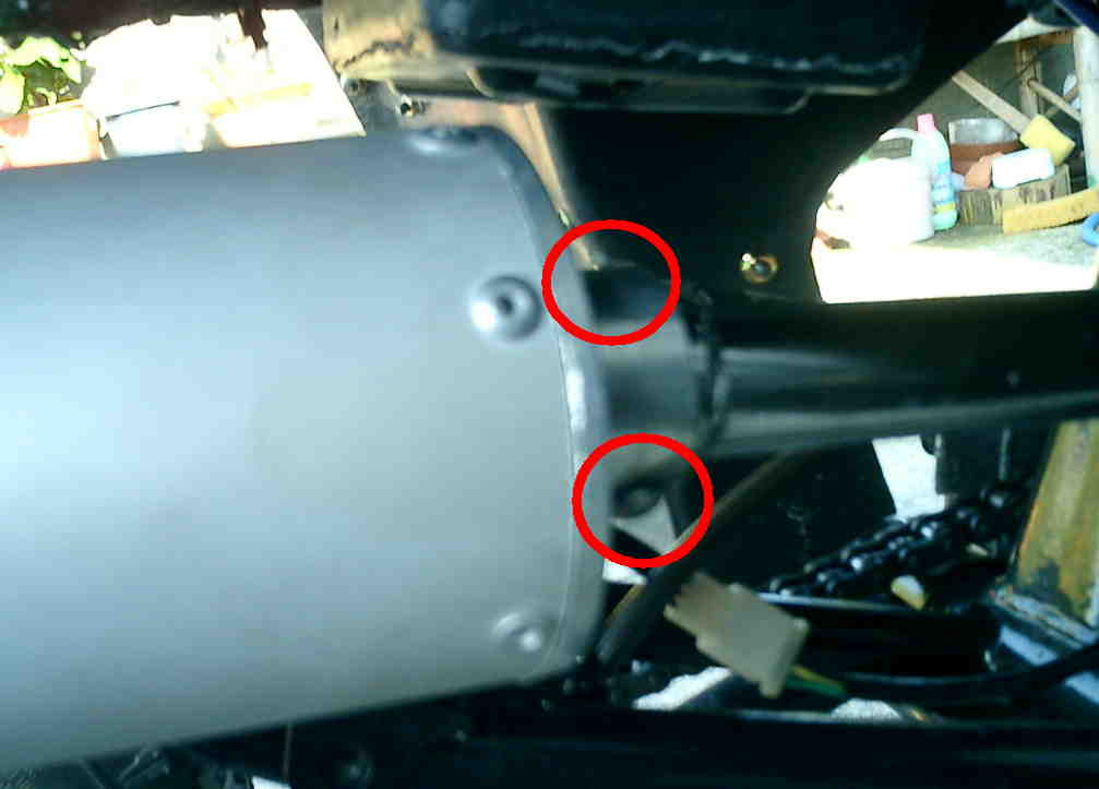 以前から、マフラー固定ステー(フレーム側)の溶接が外れたり、サイレンサーが走行する度に緩んでくるのでステンレス製ドリルねじ(5㎜×16㎜)を購入してサイレンサー固定しました。