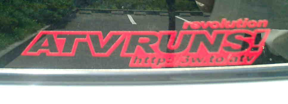 現在、MY ATV がエンジンハンガー溶接のため修理工場に入ってるのでとりあえず、頂いた赤1枚を車のリアウィンドウに貼ってみました。