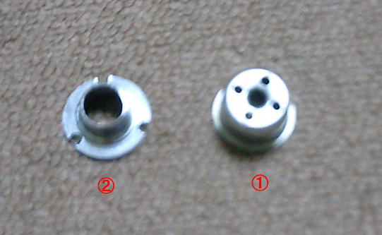 写真①は加工無しにサイレンサー部分に入るので①を入れてから②を取り付け若干の空洞と排圧をがかかると思われます。