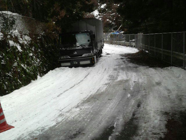 その後トラックも来たので、下はアイスバーンの旨を伝えたのです