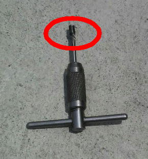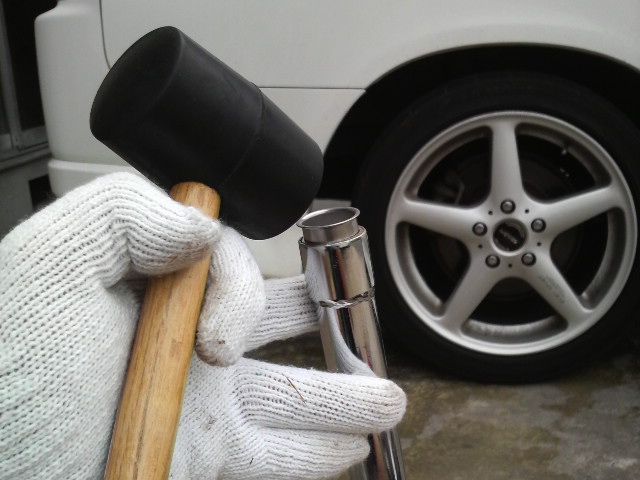 カラーのすき間から、鉄棒で少しずつ叩き出します。