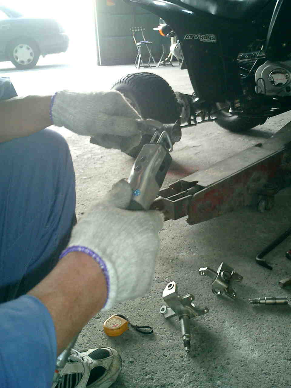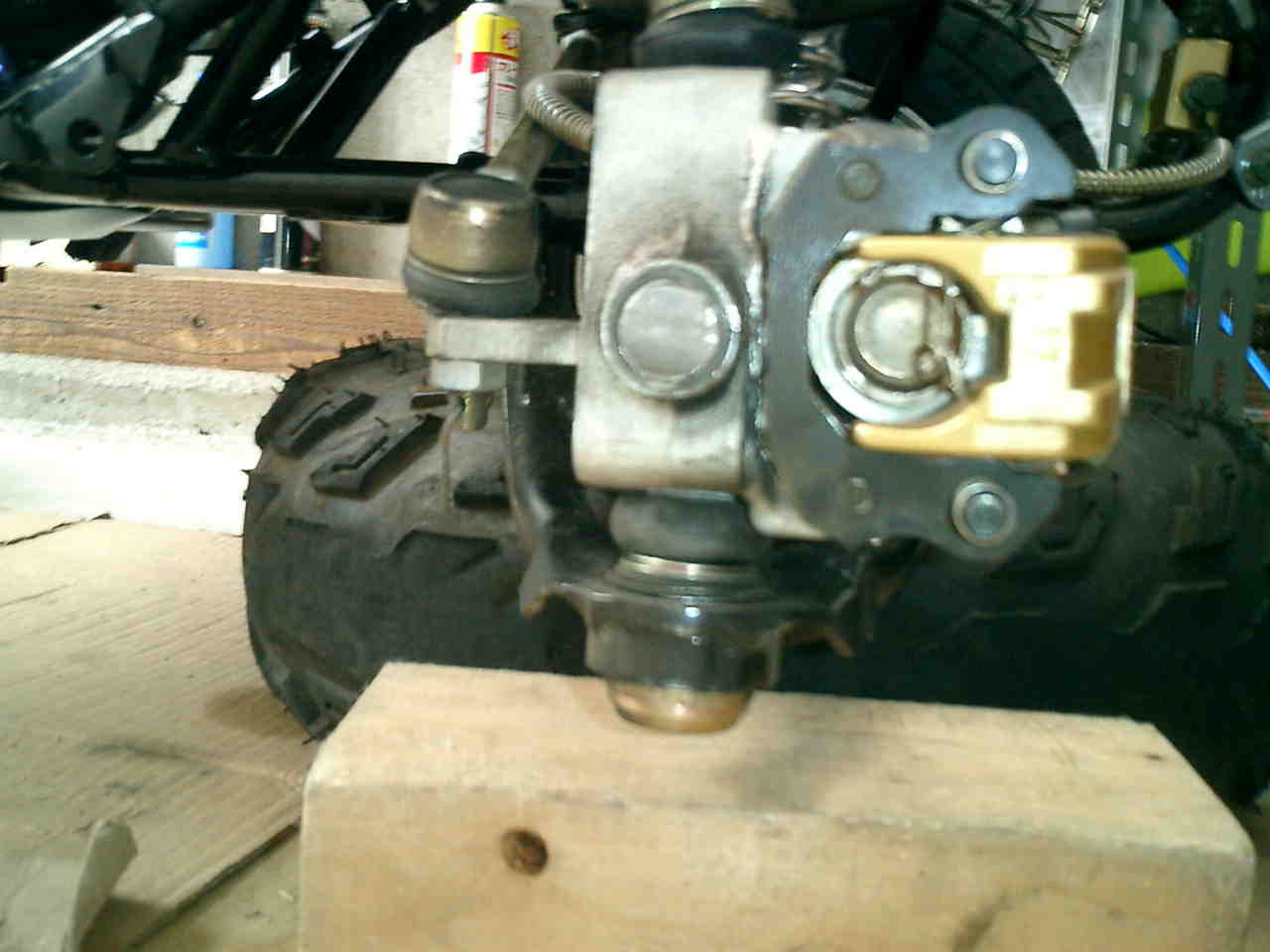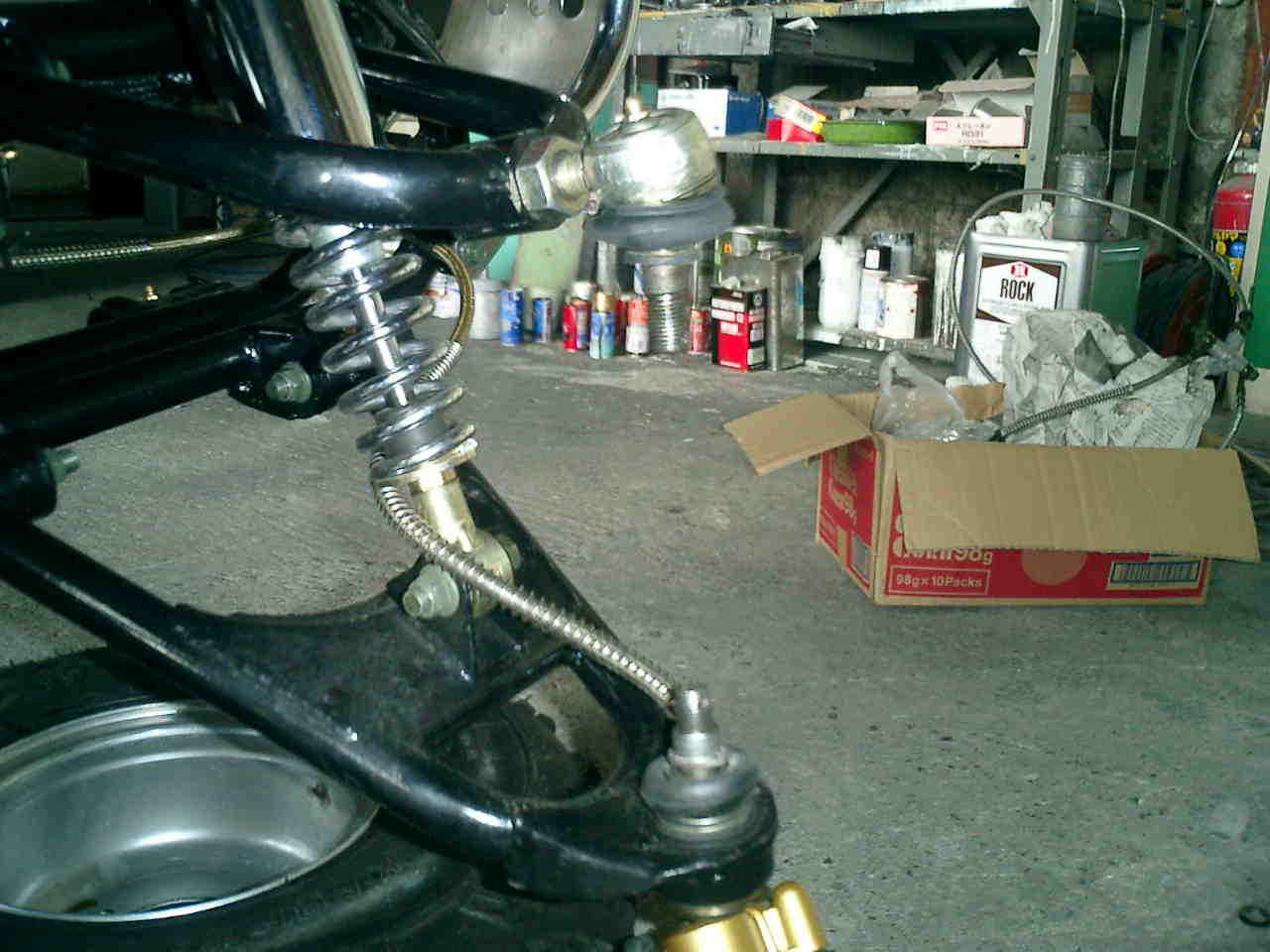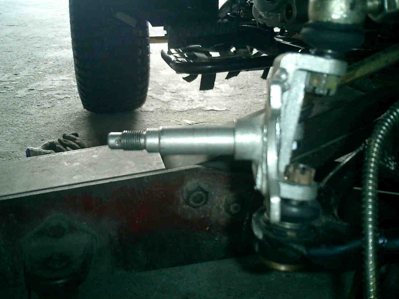 て確認して見ましたがフロントのロアアームのボルトが緩んでいて割