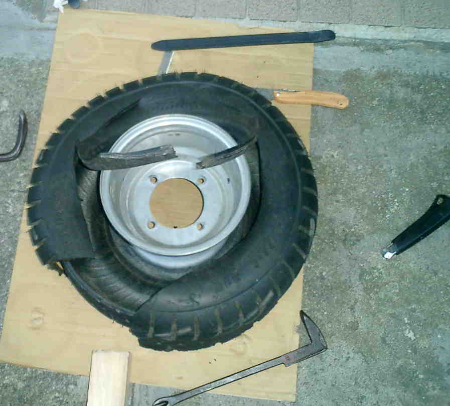 タイヤレバーでタイヤを外すのが固くてホイルの傷を防ぐために